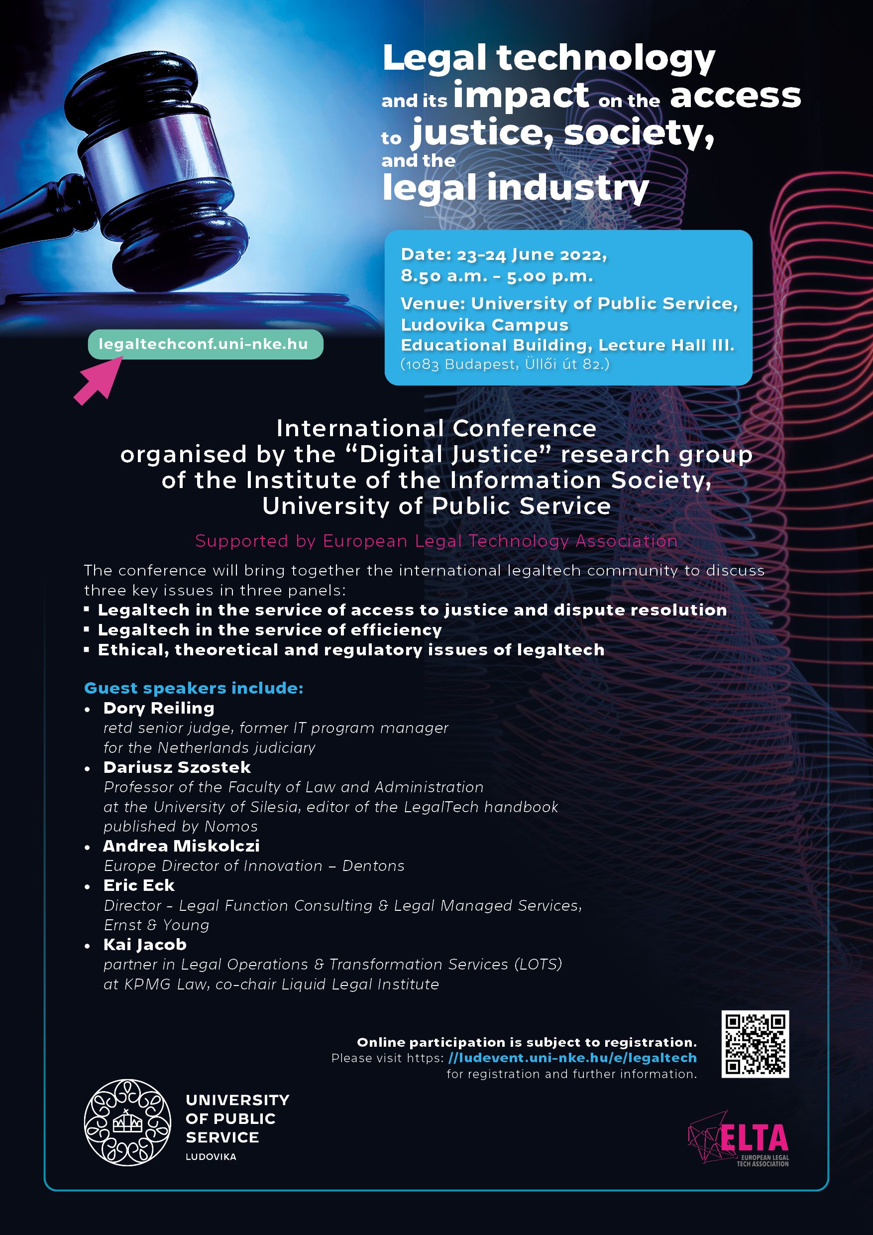 The significance of legal technologies has increased in recent years. In addition to traditional areas such as legal research, document management, or office and court administration, a number of new applications and innovative solutions have emerged. These include online dispute resolution systems, legal analysis systems based on natural language processing, or legal prediction software. These systems already often use artificial intelligence (technologies based on machine learning), which also raises a number of ethical issues. At the same time, more and more people are starting to talk about the social implications of legaltech.